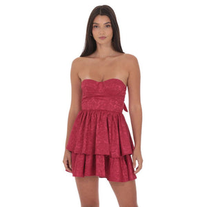 Jacquard Corset A-line Dress in Rose