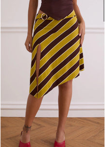 Sherry Split Midi Skirt- Stripe Retro Yellow