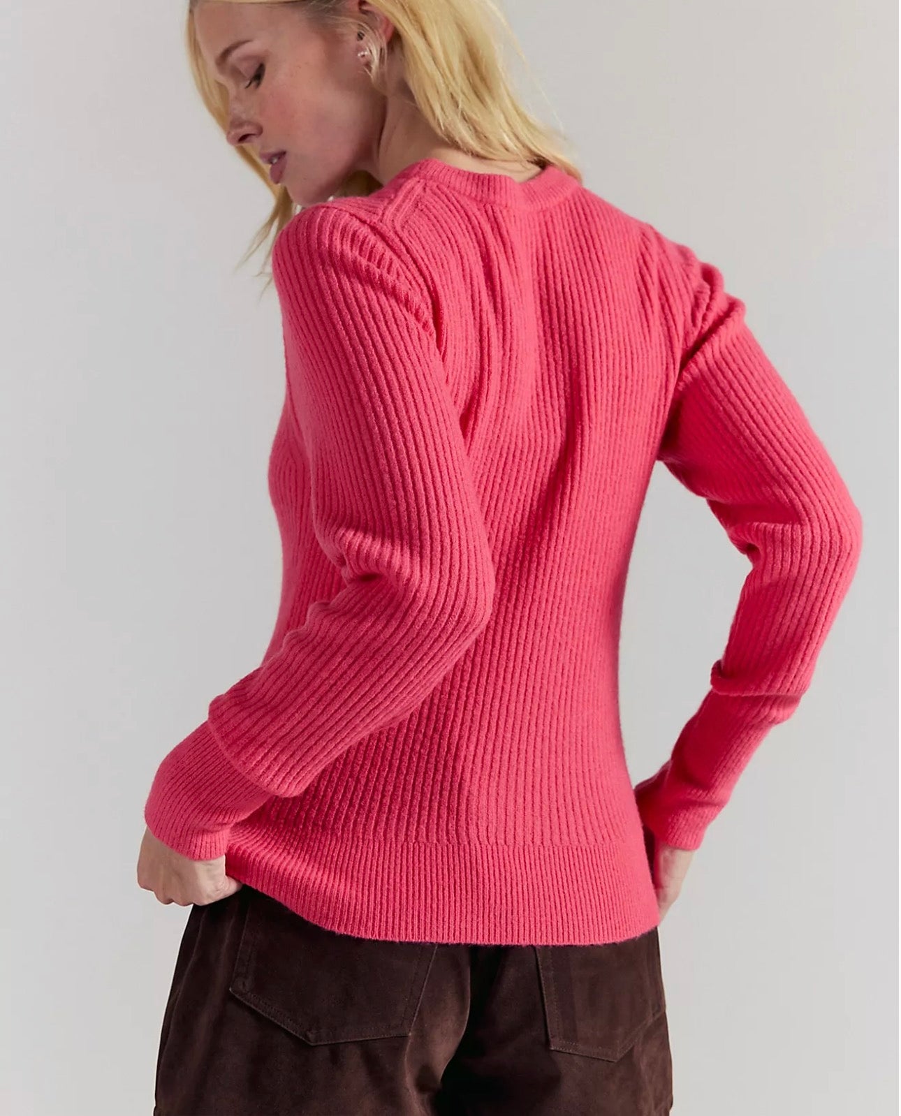 Your next everyday essential, this staple pullover features a ribbed knit fabrication and a fitted silhouette for the perfect throw-on style.