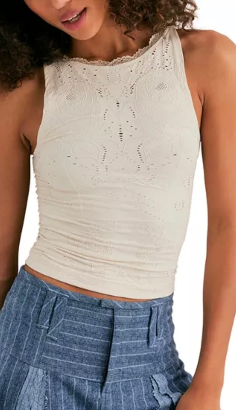 Effortlessly elevate your tanks collection with this super sleek style featured in a fitted silhouette with floral embroidery and lace trim for a forever femme finish.