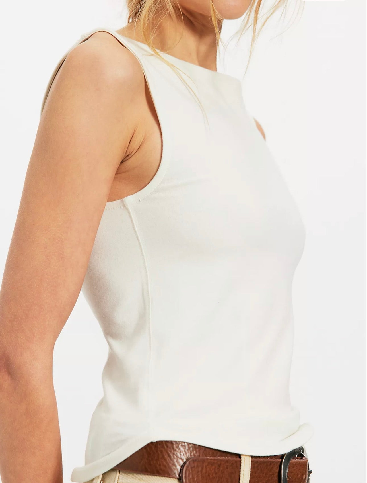 Effortlessly essential, this flattering tank features a fitted silhouette, a soft cotton-blend fabrication, and a classic boat neckline. Style solo or layer under a button-up for a timeless design.