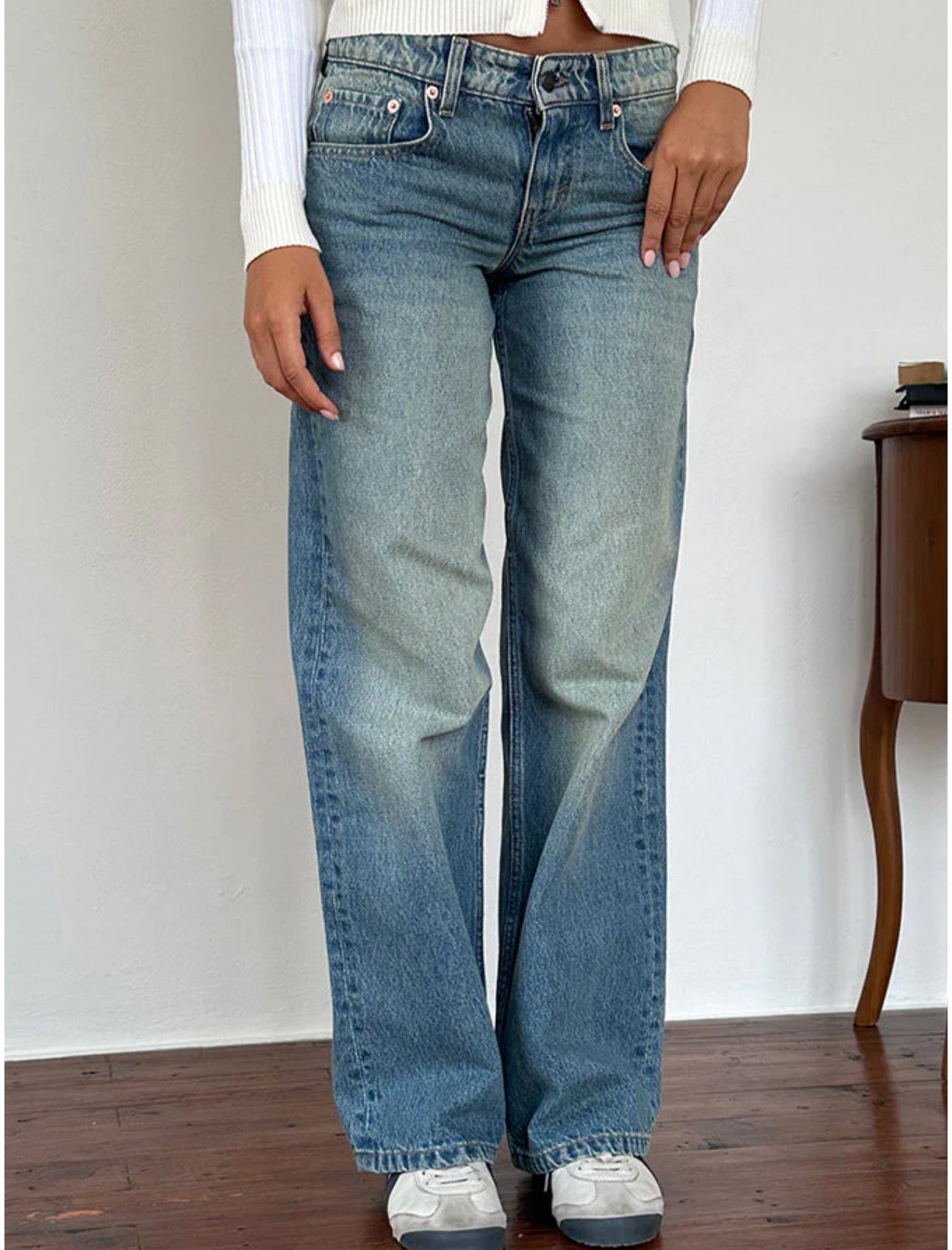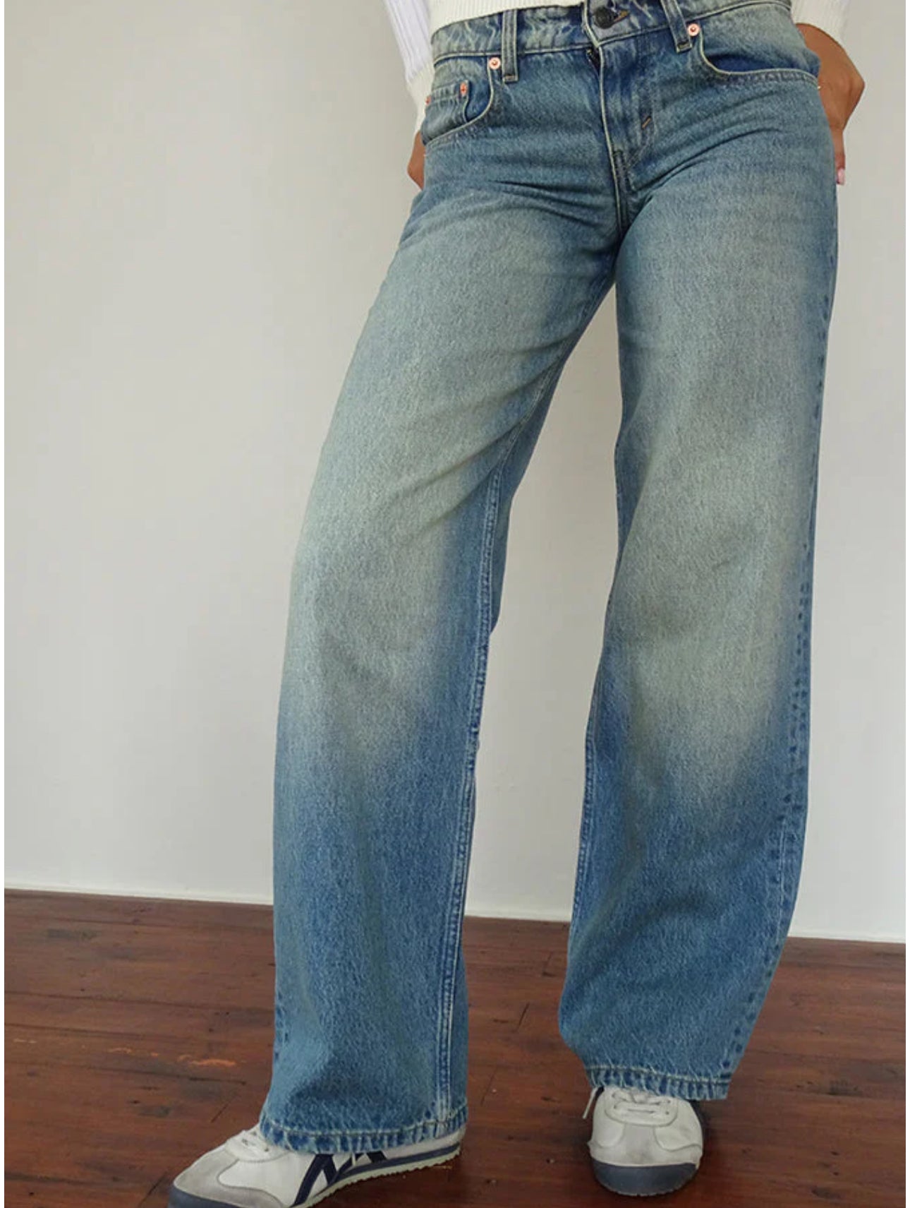 The perfect jeans do exist. In a sea green wash, our Parallel jeans feature a low rise straight leg with 5 pockets, branded back tab, branded button and rivets.