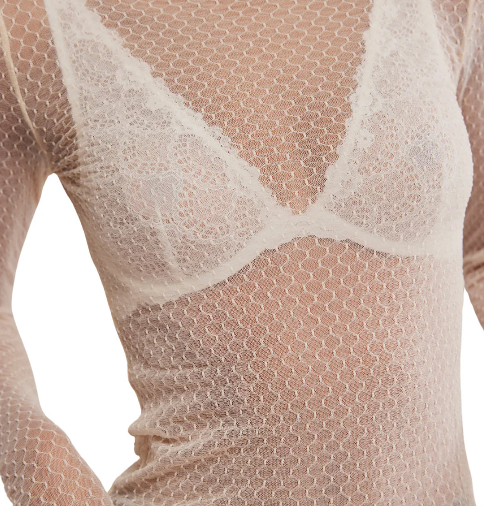 Add the perfect layer to every look with this effortless long-sleeved top featured in a sheer, textured fabrication, ideal to style over anything from a tank to a barely-there bralette.